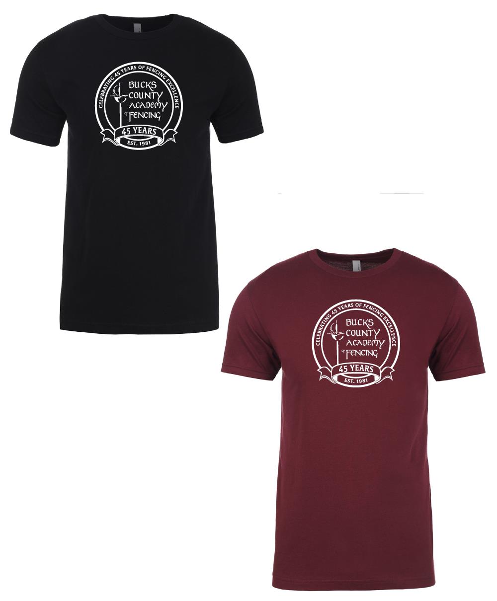 01) Bucks County Academy of Fencing - '45TH ANNIVERSARY' Youth / Adult Unisex Cotton Short Sleeve Tee