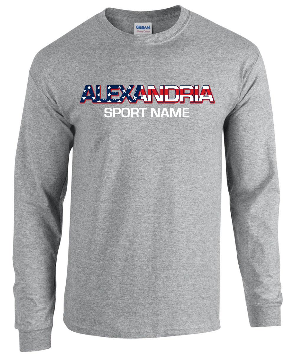 16) Alexandria Tigers - 'FLAG' Sport Grey Youth / Adult Unisex Cotton Long Sleeve Tee